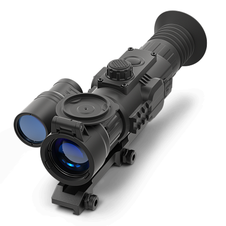 Этот цифровой прицел используется как днем, так и ночью. CMOS-матрица с разрешением HD 1280х720 обладает высокой чувствительностью. В комплекте идет внешний съемный ИК-осветитель, но в сумерках и при наличии на небе луны, прицел обходится и без него.